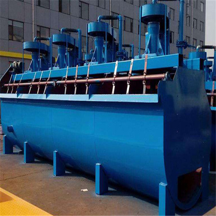 浮選機是實現浮選工藝過程的主要裝置,經過濕式磨礦已基本單體解離的礦物被調制成一定濃度的擴張,在攪拌槽內與浮選藥劑充分作用。然后送入浮選機,在其中進行充氣與攪拌,使表面已受捕收劑作用的礦粒向氣泡附著,在礦漿面上形成礦化泡沫層,用刮板刮出,即得泡沫產品精礦。