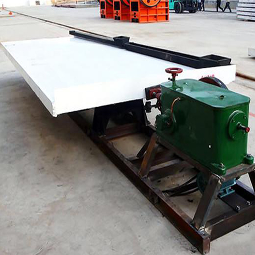 礦用搖床床面作回轉(zhuǎn)運(yùn)動(dòng)中借慣性離心力強(qiáng)化選別過(guò)程的設(shè)備。礦漿及沖洗水能夠沿床面橫向運(yùn)動(dòng)。不同密度和粒度的礦粒在床面上呈扇形展開(kāi),經(jīng)過(guò)篩選在6-s搖床尾部排出尾礦及精礦。